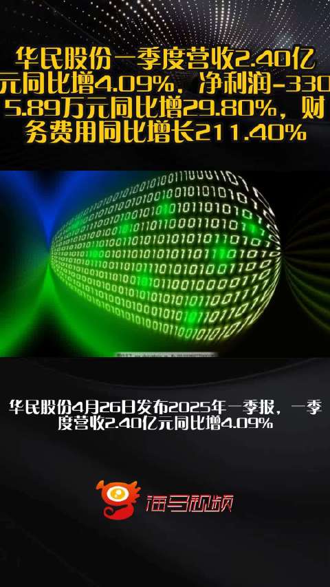 华民股份一季度营收2.40亿元同比增4.09%,净利润-3305.89万元同比增29.80%,财务费用同比增长211.40%