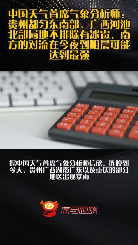 中国天气首席气象分析师:贵州都匀东南部、广西河池北部局地不排除有冰雹,南方的对流在今夜到明晨可能达到最强
