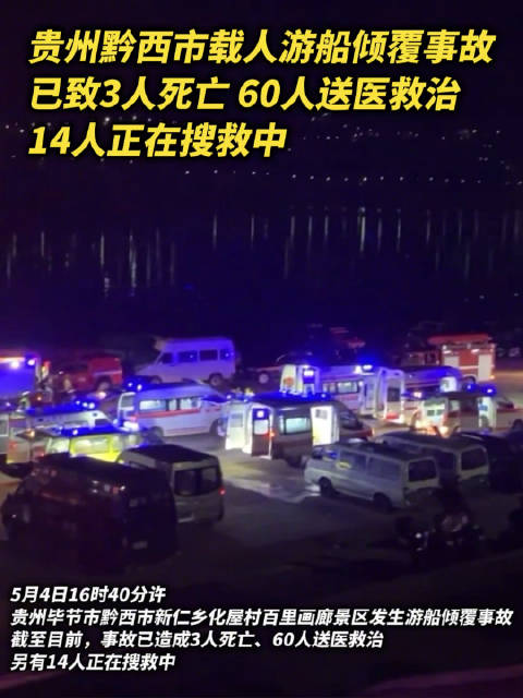 贵州游船倾覆事故已致3人死亡 14人正在搜救中
