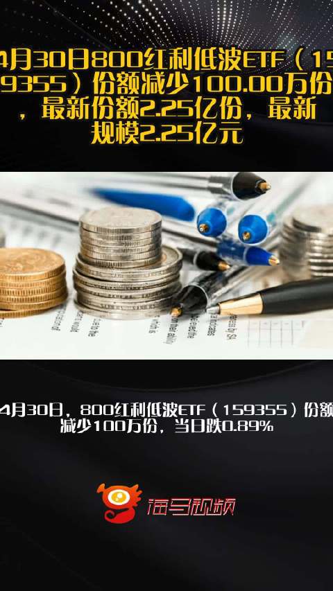 4月30日800红利低波ETF(159355)份额减少100.00万份,最新份额2.25亿份,最新规模2.25亿元