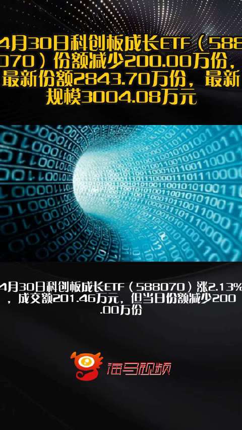 4月30日科创板成长ETF(588070)份额减少200.00万份,最新份额2843.70万份,最新规模3004.08万元