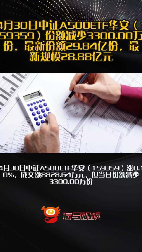 4月30日中证A500ETF华安(159359)份额减少3300.00万份,最新份额29.84亿份,最新规模28.88亿元