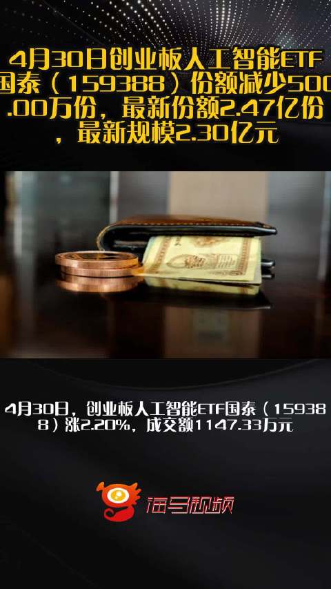 4月30日创业板人工智能ETF国泰(159388)份额减少500.00万份,最新份额2.47亿份,最新规模2.30亿元