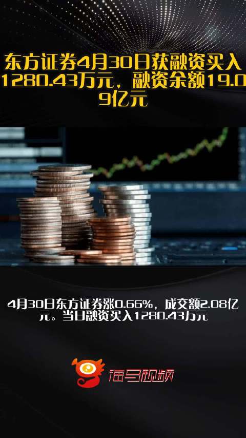 东方证券4月30日获融资买入1280.43万元,融资余额19.09亿元