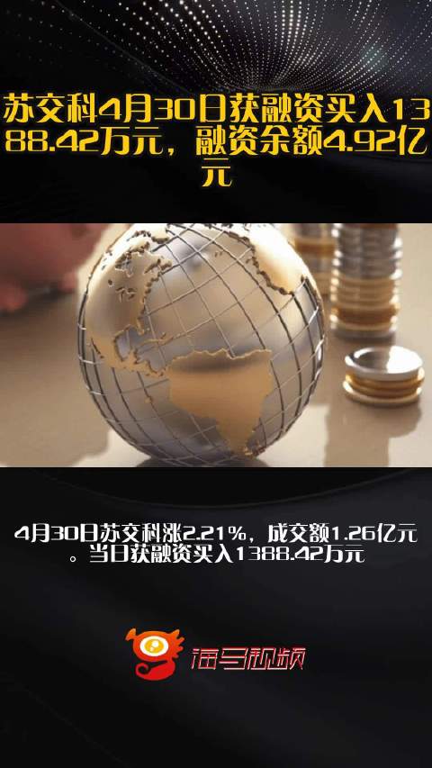 苏交科4月30日获融资买入1388.42万元,融资余额4.92亿元