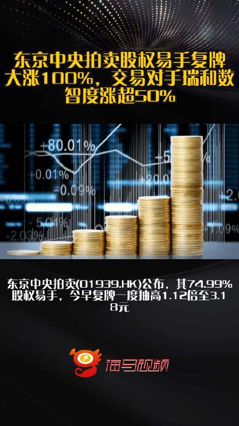 东京中央拍卖股权易手复牌大涨100%,交易对手瑞和数智度涨超50%