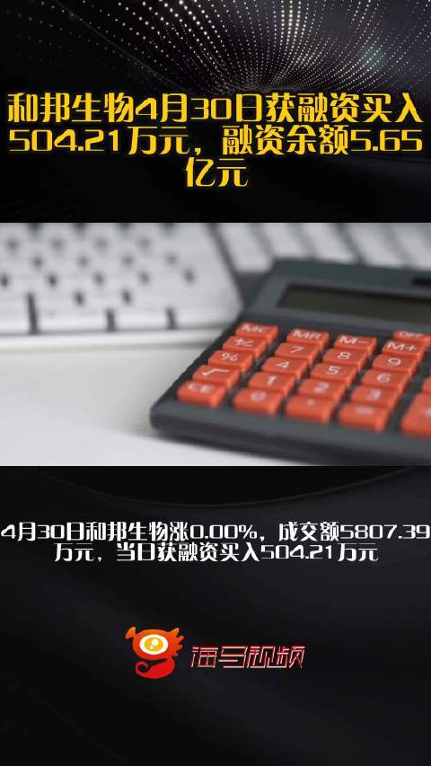 和邦生物4月30日获融资买入504.21万元,融资余额5.65亿元