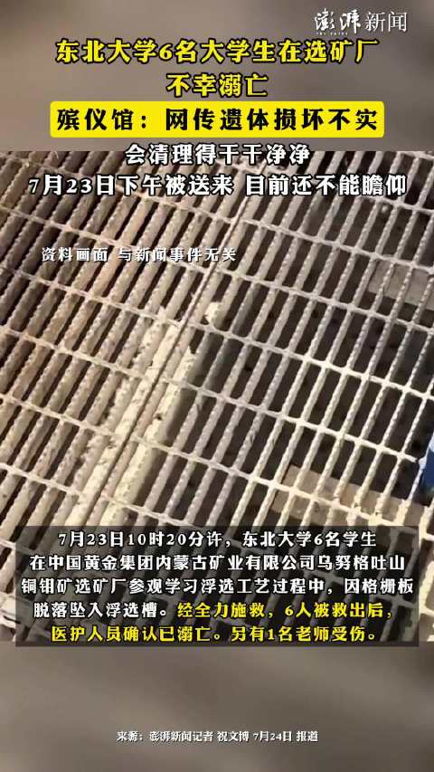 东北大学6名大学生在选矿厂不幸溺亡,殡仪馆:网传遗体损坏不实
