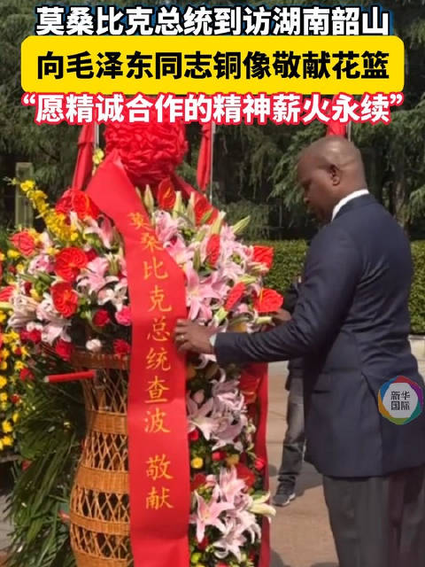 莫桑比克总统到访湖南韶山 向毛泽东同志铜像敬献花篮