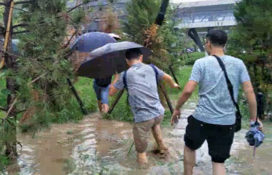 实拍|北京西二旗开启“看海”模式:路面一片汪洋 行人蹚泥坑上班